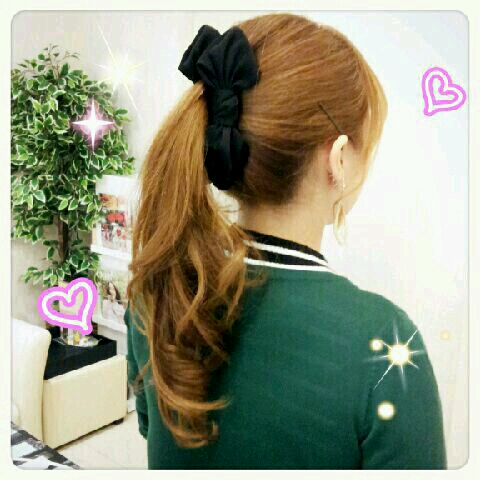 毛先にゆるくパーマをかければひとつ結びも、素敵なアレンジになりますよね!
